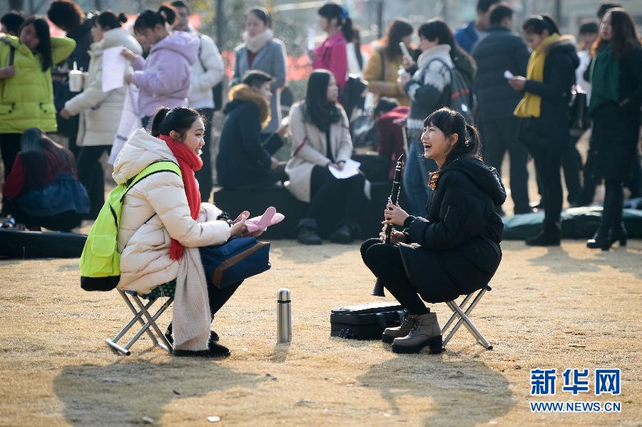 1月22日,在安徽艺术职业学院内,报考音乐学专业的考生在进行考前练习。 2015年安徽省外院校在皖设点艺术专业考试仍在紧张进行。本次考试将持续至2月8日,涉及百余所省外院校。记者连续多日走近考生,用镜头记录考生的点点滴滴。新华社记者 张端 摄