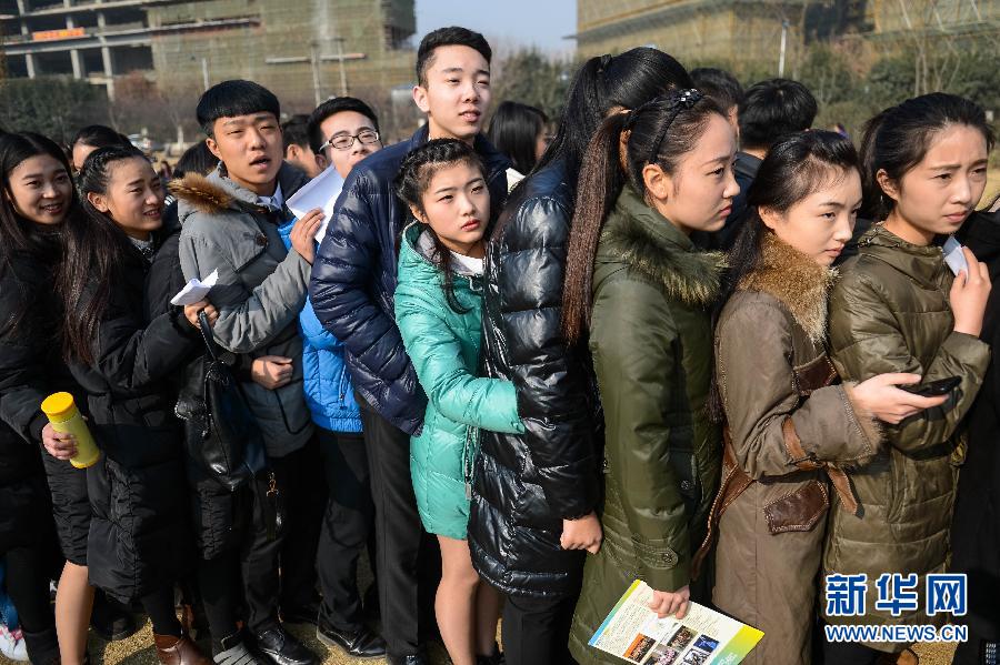 1月28日,艺考生在安徽艺术职业学院内排队候考。 2015年安徽省外院校在皖设点艺术专业考试仍在紧张进行。本次考试将持续至2月8日,涉及百余所省外院校。记者连续多日走近考生,用镜头记录考生的点点滴滴。新华社记者 张端 摄