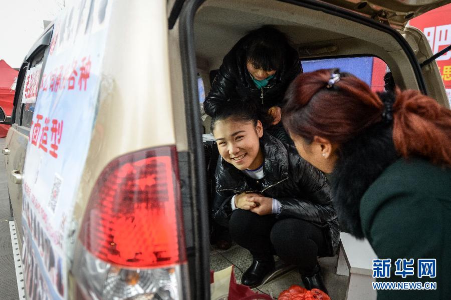 1月26日,一名报考播音与主持专业的考生在考试前做造型。 2015年安徽省外院校在皖设点艺术专业考试仍在紧张进行。本次考试将持续至2月8日,涉及百余所省外院校。记者连续多日走近考生,用镜头记录考生的点点滴滴。新华社记者 张端 摄