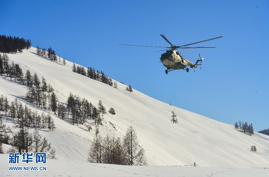 2月6日,新疆军区某陆航旅的直升机将年货运至边防哨所。当日,驻守新疆军区阿勒泰军分区红山嘴边防连的官兵们迎来了期盼已久的年货。这里大雪封山已4个多月,并将一直持续到5月底。每年春节前夕,新疆军区某陆航旅的直升机都会按时送来过年所需的给养。新华社记者 江文耀 摄