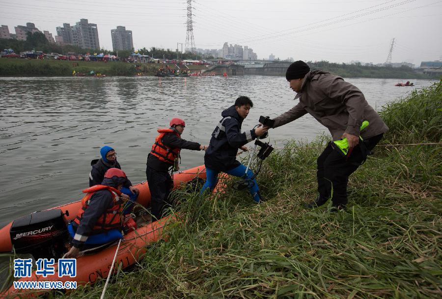 2月8日,救援人员带着金属探测器登上小艇,继续在基隆河里搜索失踪乘客。当日,台湾复兴航空坠机事故搜救工作继续进行,截至17时仍没有进展,3名乘客下落不明。 新华社记者金立旺摄