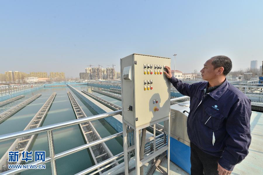 2月8日,河北省石家庄市西北地表水厂工人在调试水处理设备。当日,河北省石家庄市南水北调配套西北地表水厂与南水北调总干渠连接通水,开始向石家庄市主城区供水。据悉,在南水北调工程中,河北省供水范围涵盖京津以南整个河北平原区。2015年春节前,17座水厂将相继与总干渠连接通水。到2020年,河北省将有3000多万人喝上优质汉江水。新华社记者 朱旭东 摄