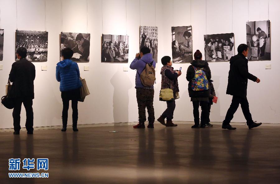 2月7日,几名市民在展厅中参观展览。当日,一场名为《破茧八零年代》的摄影作品展在天津美术馆拉开帷幕,展览用108幅由天津老一代摄影工作者拍摄的新闻摄影作品,展现了天津在上世纪八十年代的城市发展历程。新华社发(刘东岳 摄)