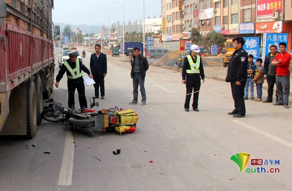 相关部门分析,返乡摩托车发生交通事故率高,与驾驶员超速驾驶、疲劳驾驶有关。每年广东、广西两地均在摩托车返乡大军途经之路设置服务点,为驾驶员提供休息处,提供免费食品及维修服务。图为事发现场。图为事发现场。