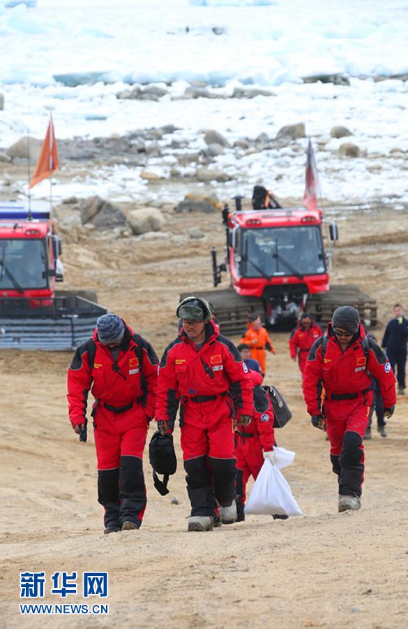 当地时间2月7日上午,内陆队员返回到中山站大本营。当日,自2014年12月中旬奔赴南极内陆昆仑站工作的中国第31次南极科考队内陆队圆满结束任务凯旋,返回到中山站大本营。 新华社记者白阳 摄