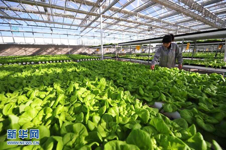 2月7日,在巴彦淖尔市临河区干召庙镇永丰五社浩彤现代农业示范园区,一名工作人员在查看菜苗生长情况。内蒙古巴彦淖尔市临河区干召庙镇永丰五社于2011年通过土地流转建起占地面积2200亩的浩彤现代农业示范园区,集休闲娱乐、现代农业科技示范、农产品生产加工储藏交易于一体。该农业示范园区提供就业岗位3000余个,每年可供应3.2万吨的绿色果蔬产品。近年来,位于河套平原的巴彦淖尔市通过示范园区建设促进农业科技成果转化、引导发展设施农业,以增加农业收益和农民收入。截至2014年10月,巴彦淖尔市设施农业面积累计突破20万亩,设施农产品产量达12.9亿斤、收入达16.7亿元,全市温室利用率达到93%、大棚利用率达到100%,有效带动了周边农民利用高新农业科技从事绿色、无公害蔬菜、瓜果生产,增收致富。新华社发(连振 摄)