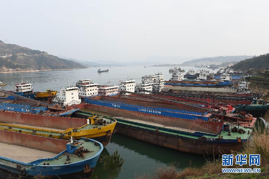 2月5日,等待过闸的船只密密麻麻地停靠在茅坪简易停靠点。记者随货船沿长江而下,一路上长江航运的快速发展让人欣喜。然而,部分地方长江岸线资源的无序开发让人心忧。 新华社记者 陈诚 摄