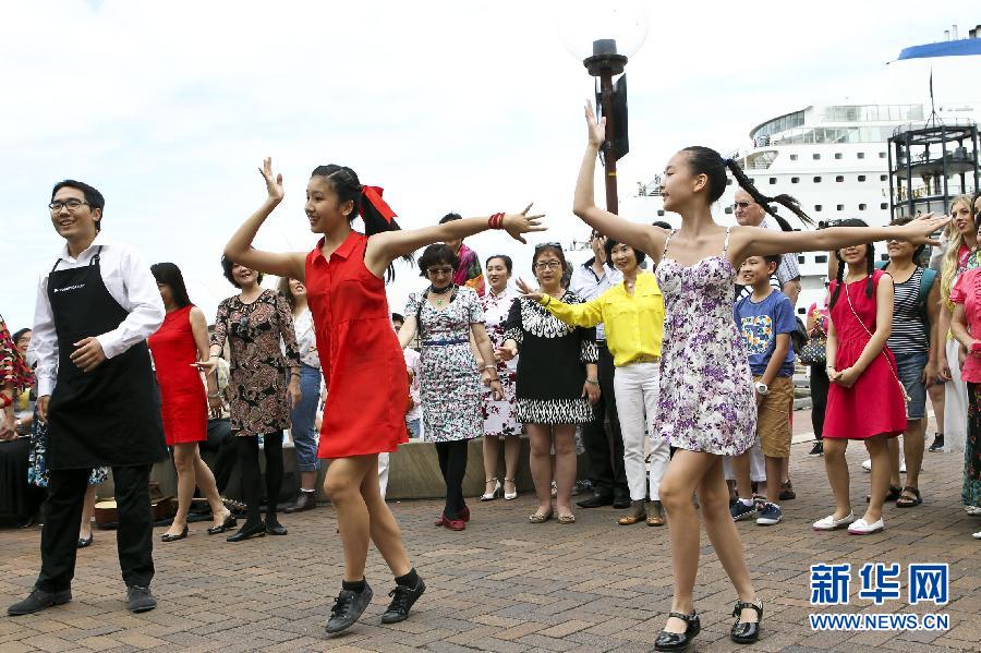 2月6日,在澳大利亚悉尼,人们参加“快闪”迎新年活动。当日,约150名华人在澳大利亚悉尼海港进行了一场“快闪”迎羊年活动。 新华社记者金林鹏摄