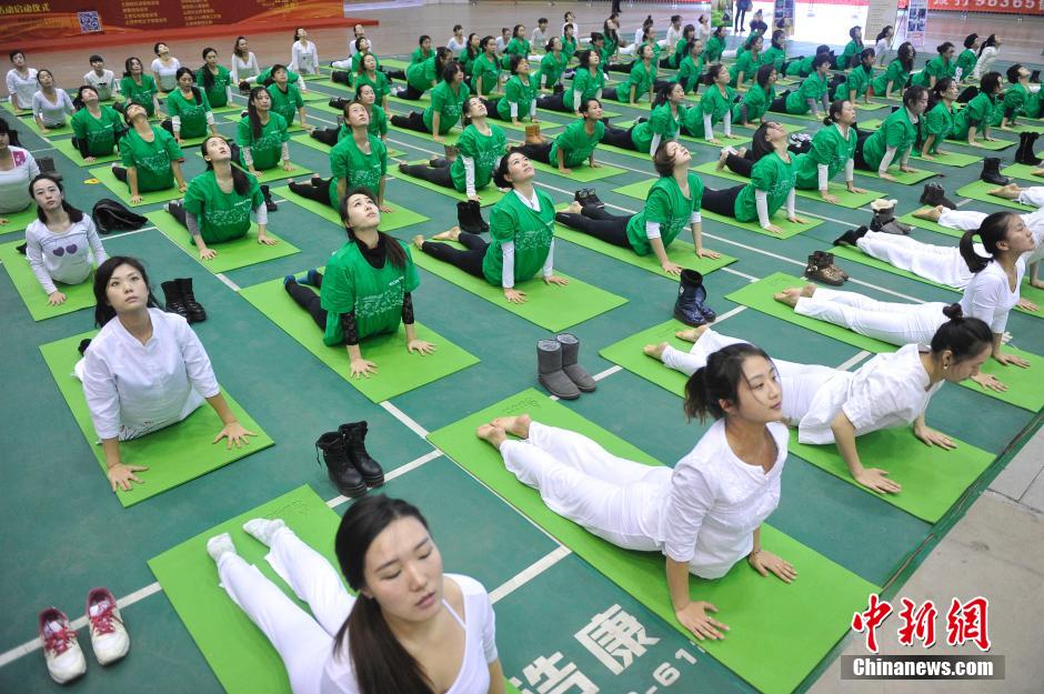 山西百名女性集体练瑜伽 倡导民众健康过春节