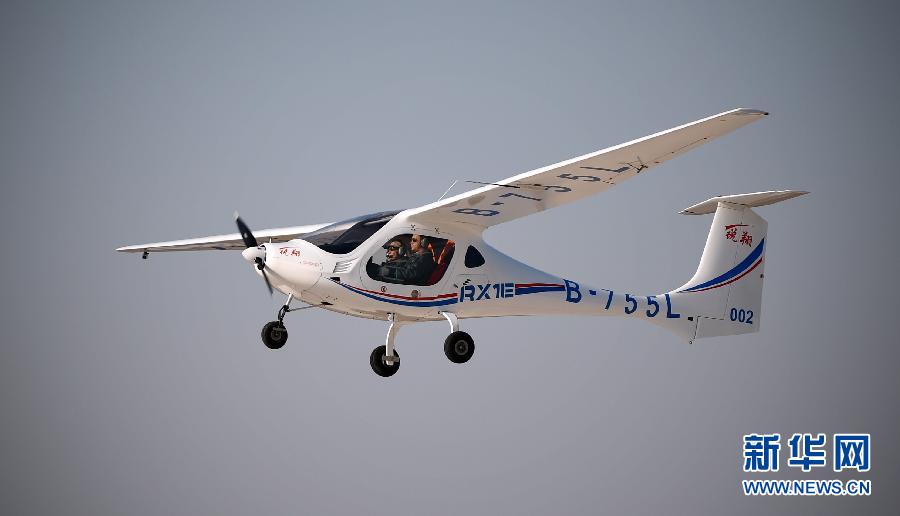 2月6日,一架RX1E锐翔双座电动轻型飞机在法库财湖机场上空飞行。当日,我国首款拥有自主知识产权的电动载人飞机——RX1E锐翔双座电动轻型飞机获得中国民航总局的型号合格审定,将进入批量生产阶段。据介绍,这款轻型运动飞机最大巡航时速可达150公里,最高升空距离3000米,最大起飞重量约500公斤。飞机采用全碳纤维复合材料结构机体,以锂电池为能源,每充电一个半小时就可飞行45-60分钟。新华社记者 姚剑锋 摄