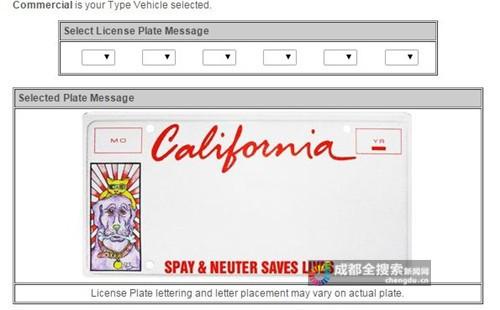 加州车管局提供的10种特殊号牌样式都必须带有“california”字样。(图片由网友提供)