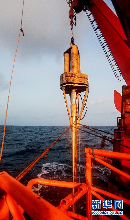“科学”号科考船9日在西太平洋雅浦海沟附近海域投放热流探针,以获取海底热流信息。科研人员将其比喻为给海底“量体温”。 新华社记者孟菁摄