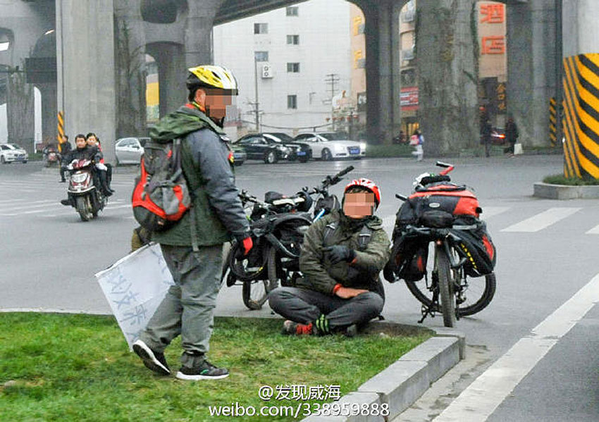 2015年2月10日报道,成都万象城二环高架下有人假扮驴友行乞被市民识破并暴打。2月7日,小杨第二次被带到了派出所。这次,他承认,他是扮成驴友要钱行骗,他根本不懂什么是“骑游”。上一次进派出所时,他和同伴被一个宝马车队识破,因不服而被对方当场教训了一顿。