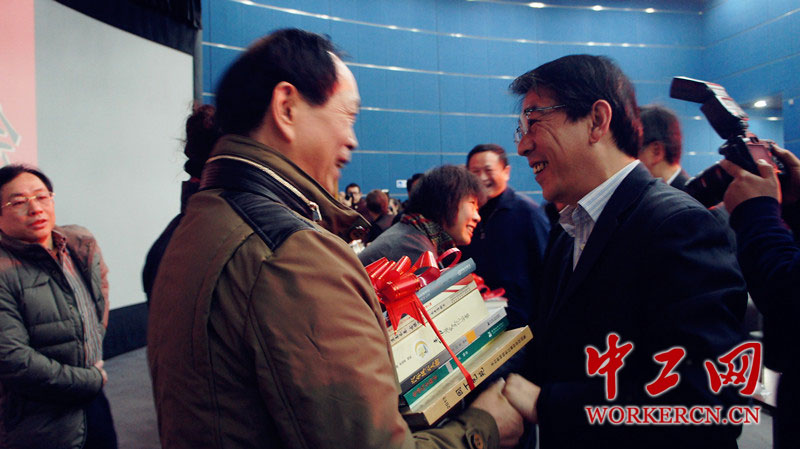 图为与会领导为基层工会主席颁发赠书。中工网记者 葛姗 摄