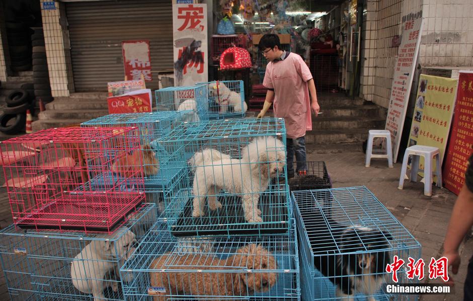 2月15日,重庆南坪一宠物美容店生意爆棚,装有小狗的笼子已经堆到了人行道上,宠物们依次等待美容。一宠物主人介绍,由于春节临近,也想给自己的宠物进行一次全面美容,迎接新年的到来。陈超 摄