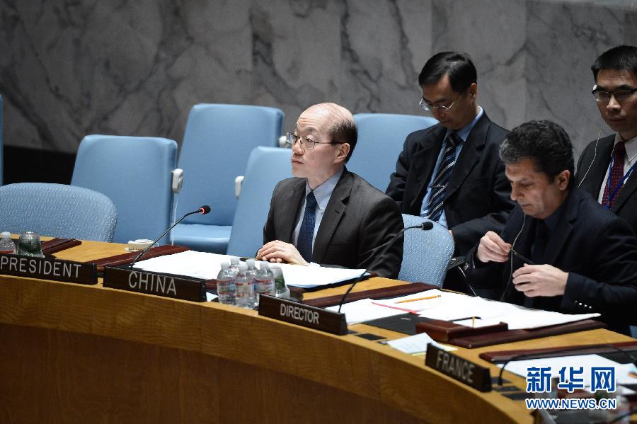 2月15日,在纽约联合国总部,安理会轮值主席、中国常驻联合国代表刘结一(左)主持安理会就也门局势召开的紧急决议。联合国安理会当日就也门局势召开紧急会议并一致通过决议,敦促也门胡塞武装组织从政府机构撤出并无条件参加联合国斡旋的谈判。新华社记者牛晓雷摄