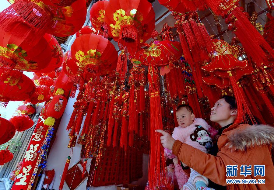 春节临近,福建省福州市文化年货市场红火,市民争相挑选春联、大红灯笼、羊年挂饰等特色年货,迎接新春佳节。 新华社记者 张国俊 摄