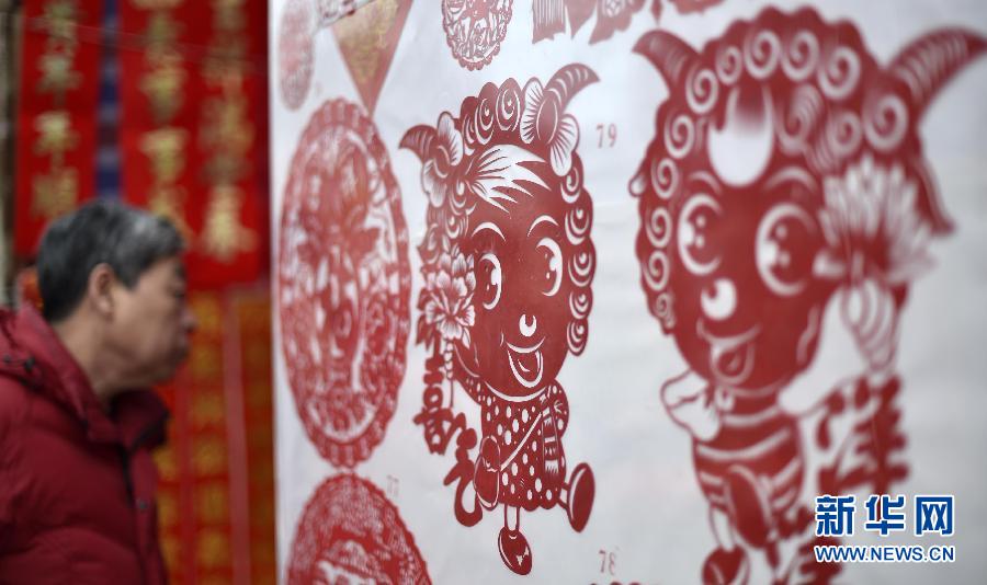 羊年春节将至,天津市古文化街市场的剪纸、灯笼等饰品上纷纷出现各种“羊”的符号和形状,预示新年喜气洋洋。 新华社记者 岳月伟 摄