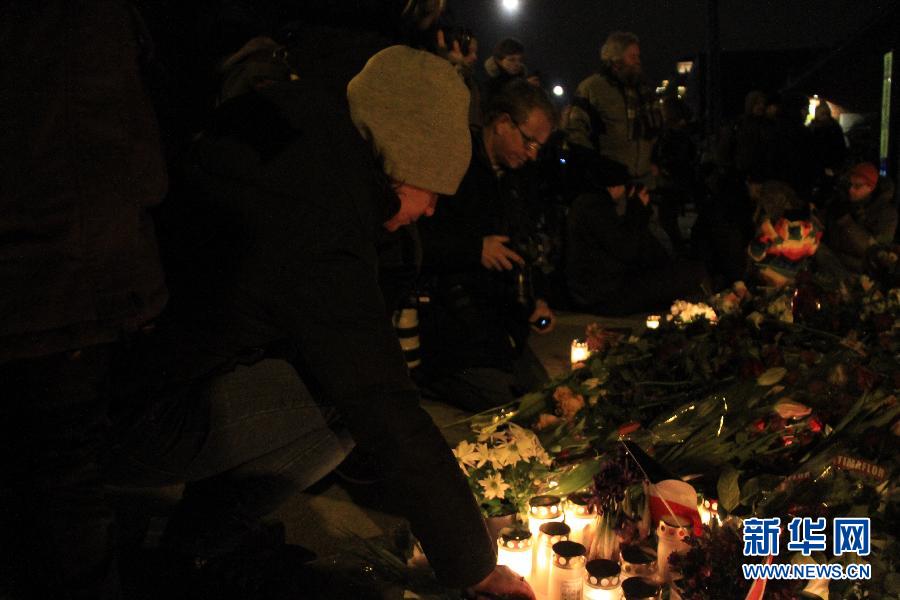 2月16日晚,在丹麦首都哥本哈根,人们参加悼念集会。当晚,数万名民众在哥本哈根举行集会,悼念枪击案的遇难者。14日下午至15日凌晨,哥本哈根发生两起枪击案,造成2人丧生、5名警察受伤。警方随后在围捕行动中将涉嫌制造两起枪击案的一名22岁犯罪嫌疑人击毙。新华社记者石寿河摄