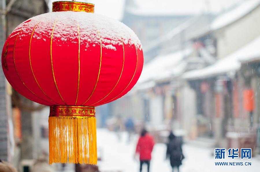 2月19日,在内蒙古呼和浩特市塞上老街,市民从覆盖着积雪的花灯下经过。当日是正月初一,呼和浩特普降瑞雪。洁白的雪花为人们欢度佳节、游园赏灯增添了温馨和浪漫。 新华社发(丁根厚 摄)
