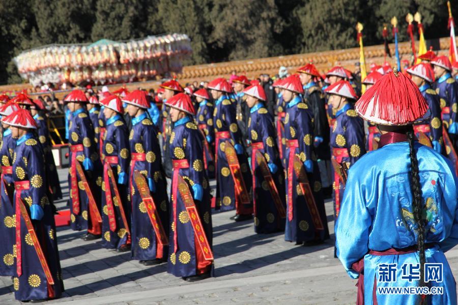 2月18日,地坛庙会上重现清代皇帝祭地的情景。 当日,为期8天的第30届北京地坛春节文化庙会开门迎客,吸引了众多市民和游客。 新华社发(刘宪国 摄)