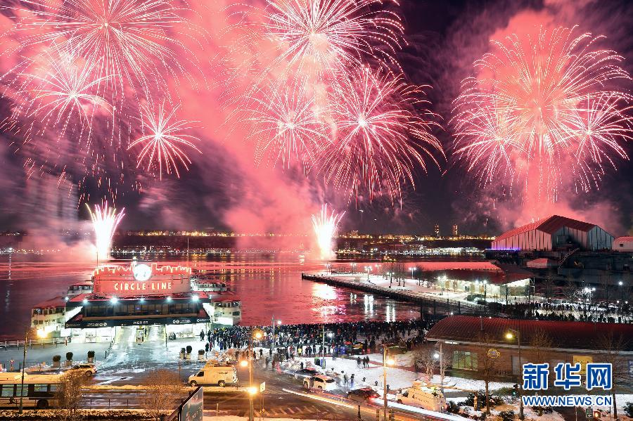 2月17日,人们在美国纽约哈得孙河畔观看焰火。当天,美国纽约市举行主题为“和美中华”的焰火晚会,庆祝中国农历新年。这是纽约首次为庆祝中国农历新年大规模燃放焰火。 新华社记者王雷摄
