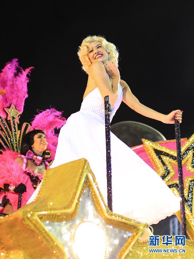 2月17日,在巴西里约热内卢桑巴大道,表演者参加特级组舞校桑巴游行。当日凌晨,包括卫冕冠军在内的特级组桑巴舞校亮相桑巴大道,将里约热内卢狂欢节推向高潮,狂欢表演一直持续到天明。 新华社记者张强摄