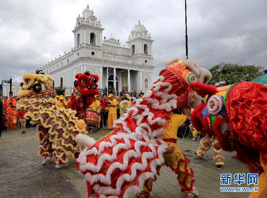 2月15日,在哥斯达黎加圣何塞,哥斯达黎加恩平工商会醒狮团表演舞狮,欢庆中国春节。 当日,中国驻哥斯达黎加使馆联合当地侨团,在哥首都圣何塞“中国街”举办2015年“欢乐春节”庙会活动。 新华社记者党琦摄