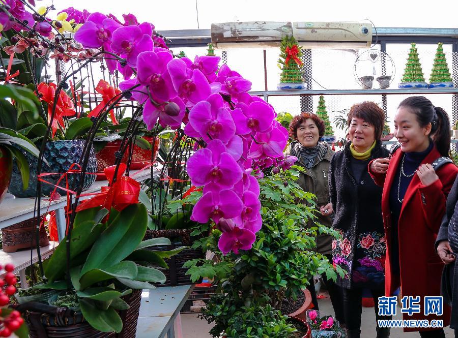 2月14日,市民在安徽芜湖花卉市场购买花卉。春节临近,人们纷纷外出置办年货,各地年货市场红红火火,年味浓郁。 新华社发(水从泽 摄)