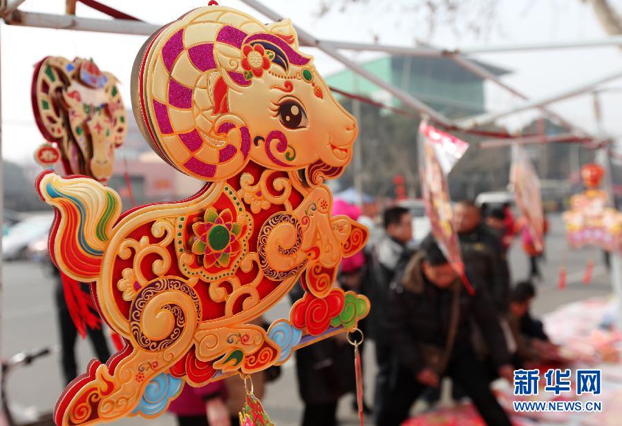 2月14日,市民在山东枣庄年货市场选购新年饰品。春节临近,人们纷纷外出置办年货,各地年货市场红红火火,年味浓郁。 新华社发(孙中喆 摄)