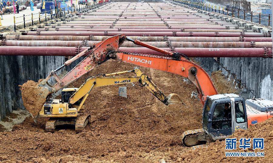 2月14日,中铁十一局四公司工作人员在武汉市轨道交通机场线施工现场作业。当日,由中铁十一局集团承建的武汉市轨道交通机场线工程土建BT项目常青车辆段站完成底板浇筑,标志着武汉轨道交通机场线施工进入全面推进阶段。据介绍,武汉市轨道交通机场线工程机场线全长19.769km,线路起自天河机场T3航站楼,至地铁2号线一期工程起点金银潭站,计划总投资约27.08亿元,预计于2016年3月底全线土建完工,2017年底实现试运营。新华社记者 肖艺九 摄