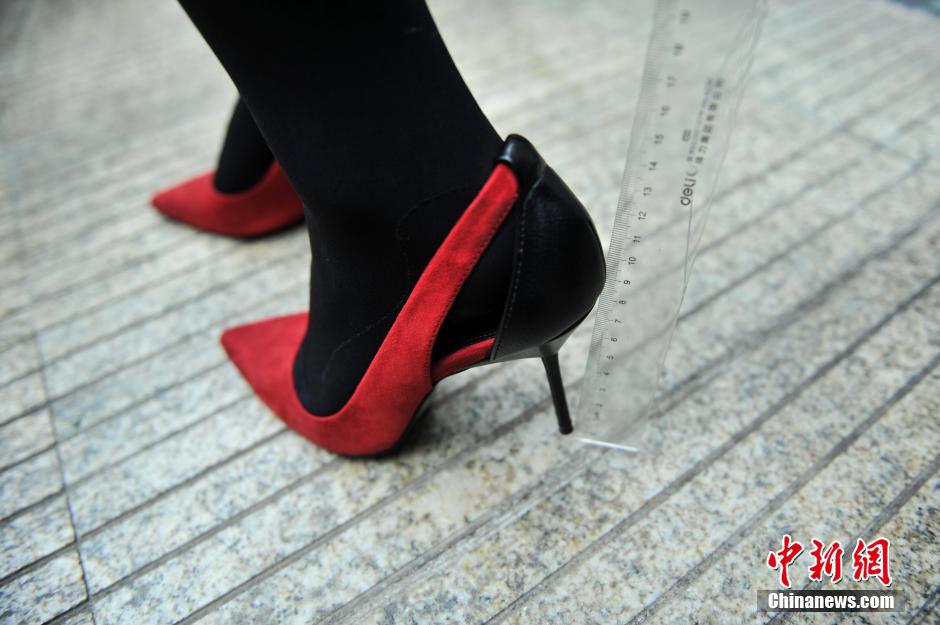 2月14日,昆明一购物中心内上演了一场“趣味情人节”活动,模特和民众穿着高跟鞋在商场内赛跑,吸引眼球。图为参赛选手集体亮相。 中新社发 任东 摄