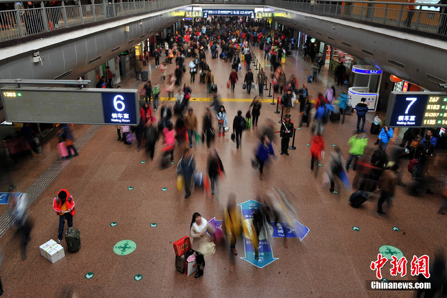 2月14日,全国春运迎来客流高峰日。当日,北京西站加开25列临客列车,预计发送旅客23.8万,比去年春运增加2万人以上,同比增长3%,未来几天将形成春运客流高峰的峰值,或突破北京西站建站以来最高的峰值。图为旅客们前往不同的候车大厅。中新网记者 金硕 摄