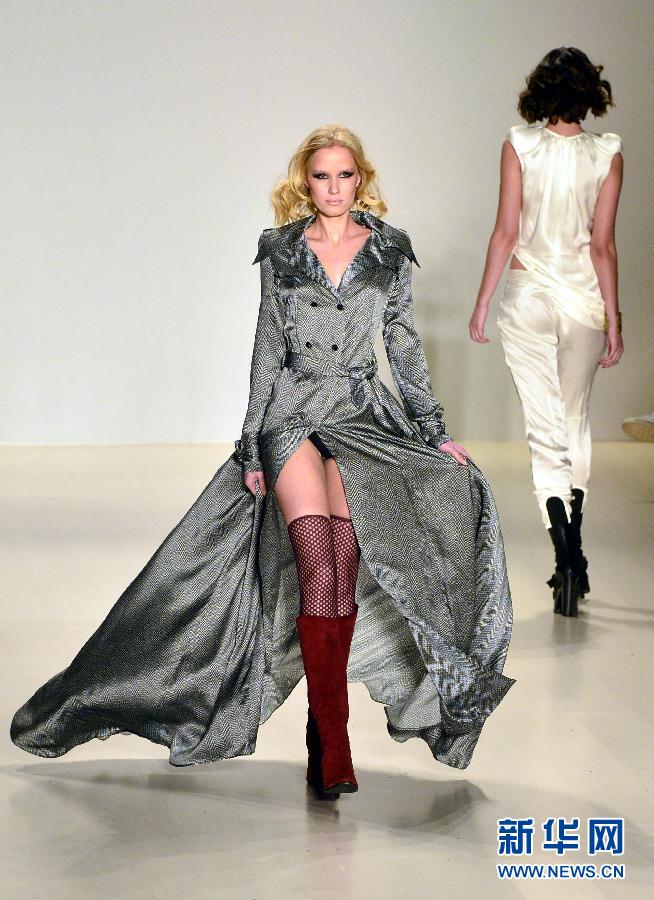 2月13日,在美国纽约林肯中心,模特在纽约时装周MARK AND ESTEL时装发布会上走秀。 当日,时装品牌MARK AND ESTEL在2015纽约秋冬时装周上展示今年将推出的时尚新品。 新华社记者王雷摄