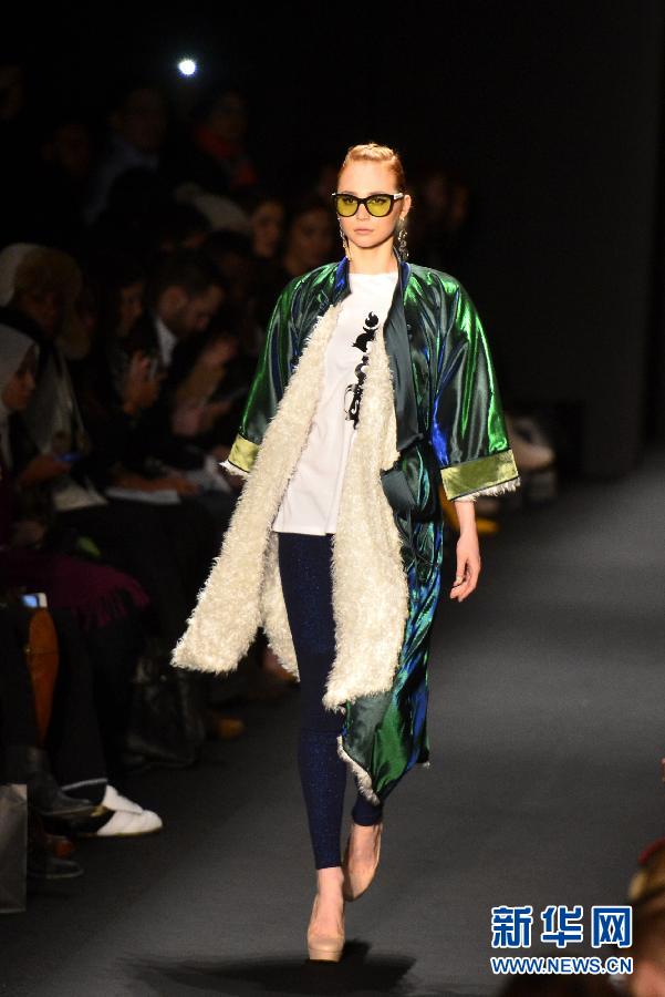 2月13日,在美国纽约林肯中心,模特在纽约时装周MONGOL时装发布会上走秀。当日,时装品牌MONGOL在2015纽约秋冬时装周上展示今年将推出的时尚新品。 新华社记者王雷摄