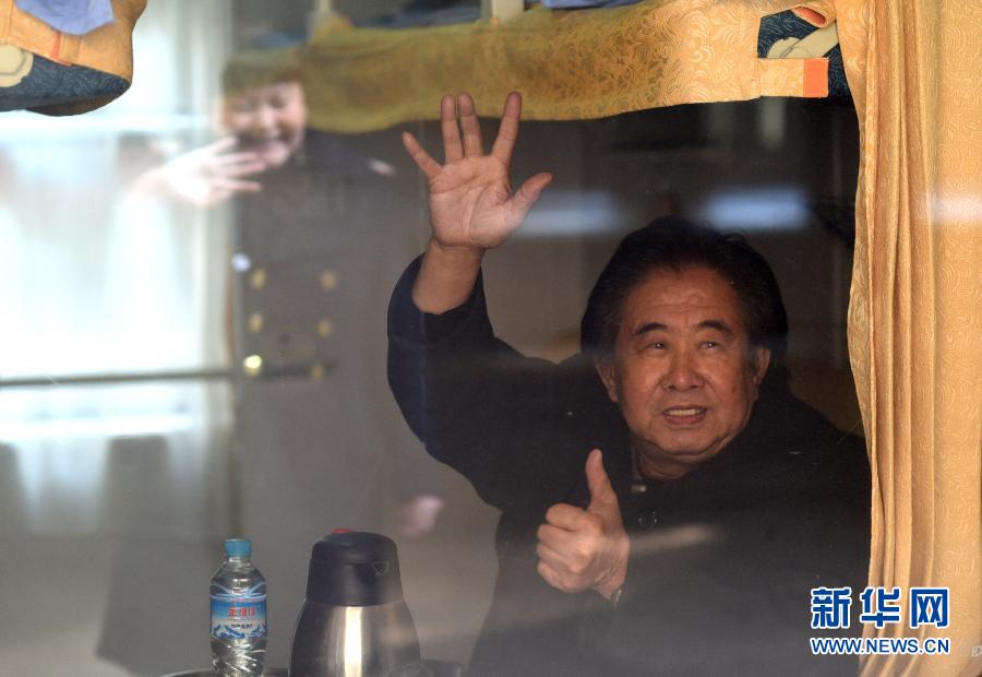 2月13日,赵从海在车窗里向杨静告别。新华社记者燕雁摄