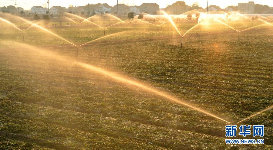 浙江省湖州市南浔区的一处现代农业园区在对越冬蔬菜秧苗进行喷水滴灌作业(2014年12月29日摄)。国家统计局浙江调查总队最新发布的年度统计数据显示:2014年浙江省农村常住居民人均可支配收入19373元,比全国平均水平高0.5倍,这已是浙江省农民人均可支配收入连续30年位居全国各省、自治区首位。在该省农民的收入结构中,人均工资性收入和经营性净收入分别达到11773元、5237元,成为收入增长的两大因素。新华社记者 谭进 摄