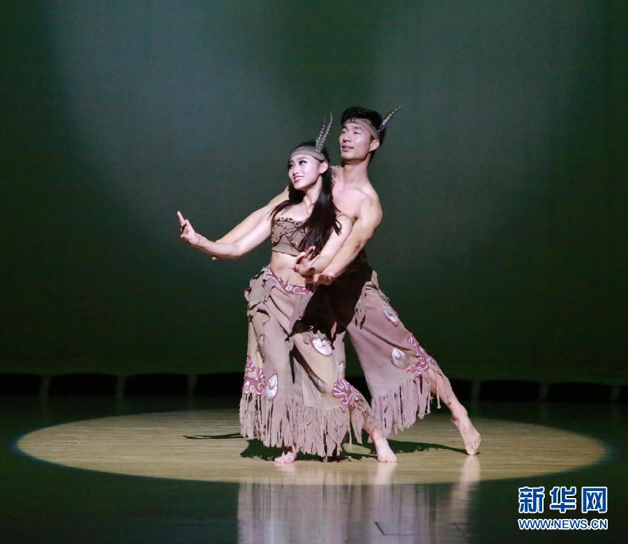 2月12日,在阿联酋阿布扎比大剧院,江苏省华侨艺术团演员表演双人舞《两滴水》。由中国江苏省侨联、阿联酋中国江苏商会等共同举办的“亲情中华·欢聚阿联酋”慰问侨胞演出12日晚在阿联酋首都阿布扎比大剧院举行。中国驻阿联酋大使常华和部分国家驻阿使节应邀出席并观看演出。新华社记者安江摄