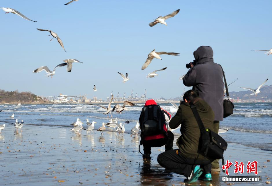 2月12日上午,上千只海鸥聚集烟台第一海水浴场附近,等待喂食。“千鸥争食”成为冬季烟台海滨一道风景,吸引许多摄影发烧友。当地几年前成立了海鸥养护小组,负责海鸥的日常喂养与救治,如今海鸥数量大大增加。 中新社发 王娇妮 摄