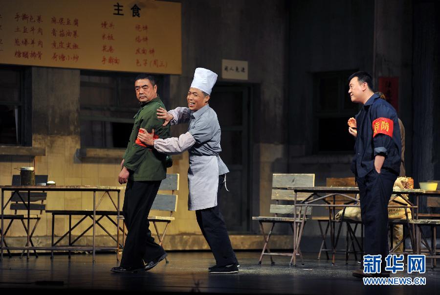 2月11日,北京人艺今年的首部原创大戏《食堂》登陆首都剧场与观众见面。该剧以“永久”这一人物为线,贯穿了整个故事发展,讲述国营钢厂老食堂人世变迁的故事,将于2月11日——3月1日春节贺岁档在首都剧场陪伴观众。新华社发(李晏 摄)