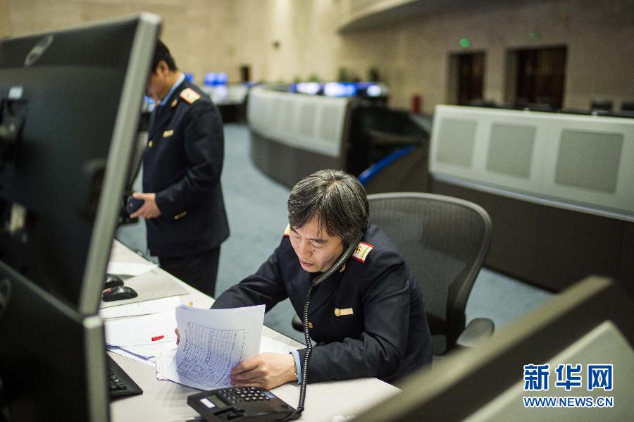 2月11日,一名调度员在北京铁路局调度指挥中心大厅拨打调度电话。2015年春运期间,北京铁路局预计输送旅客5540万人,春运节前的图定始发终到客车521对。安全、高效、可靠的调度指挥,是确保北京铁路局管内各条铁路干线畅通的关键。北京铁路局调度所共712人,分为行车、机车、施工等17个调度工种。一名铁路调度员的工作强度很高,每天要按运行图指挥列车安全运行、进路盯控多列次列车,拟发和发布近百条调度命令,接听和拨打调度电话数百次,部署、确认、下达各种运行计划,同时还要实时监控调度监视显示屏。据悉,北京铁路局调度指挥中心是目前亚洲最大的调度生产指挥枢纽,设置245个调度工位,主要管辖京沪高铁、京广高铁等17条主要干线。新华社记者 覃海石 摄