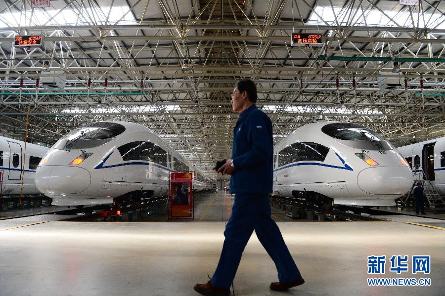 2月11日,一名工作人员从中国北车唐山轨道客车有限责任公司调试厂列车调试车间内走过。中国北车是中国轨道交通装备制造行业的领军企业,也是世界轨道交通装备行业的重要成员。根据世界权威的德国SCI公司发布的统计数据,2011年至2013年,中国北车连续3年位居全球轨道交通装备行业的世界冠军。唐山轨道客车有限责任公司隶属于中国北车股份有限公司。 新华社记者 陈晔华 摄
