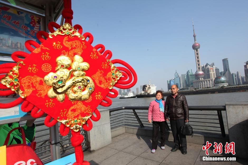 2月19日大年初一,上海空气质量首度未因烟花爆竹燃放超标,市民和游客拥抱羊年第一个蓝天。中新社发 张亨伟 摄