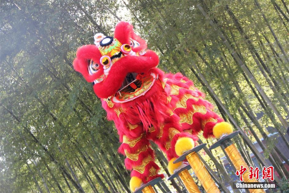 常州万亩竹海上演武林争霸 南北狮王闹新春