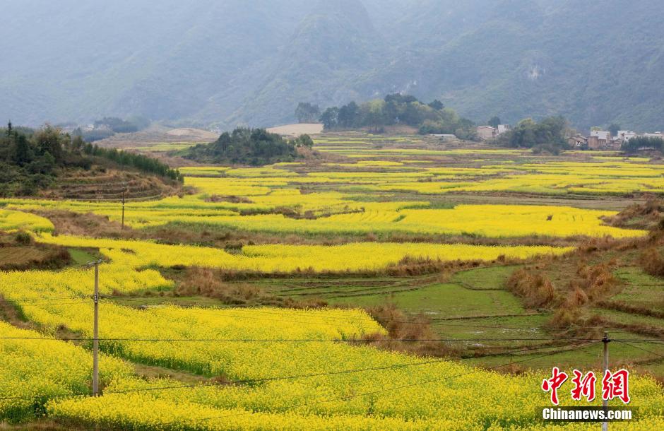 图为2月23日,在广西柳州市融安县潭头乡西岸村帽岭屯拍摄的油菜花田。谭凯兴 摄