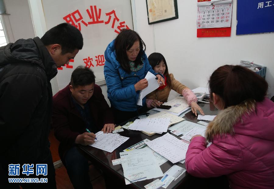 2月27日,外来务工者在上海浦东金桥来沪人员就业保障服务管理中心一家职介所里填写个人简历。节后,上海浦东新区最大的来沪人员劳动力市场——金桥来沪人员就业保障服务管理中心迎来找工旺季,大量外来务工者来到管理中心内的近60家职介所求职。新华社记者裴鑫摄