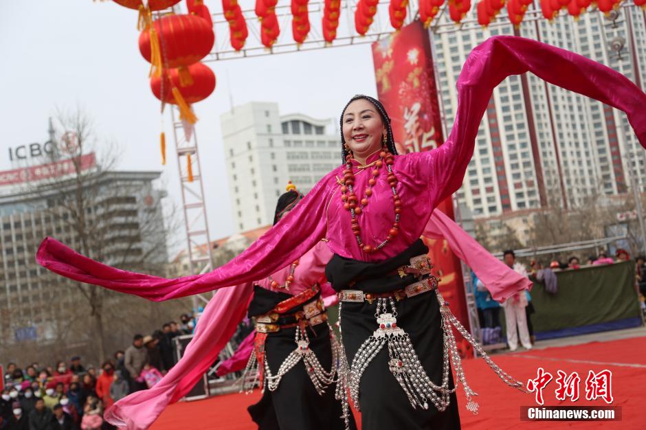 玉树藏族舞者庆祝藏历木羊新年巧遇农历春节