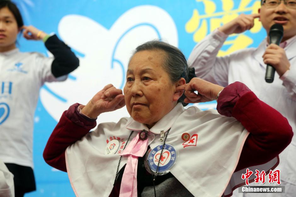 3月3日,是中国第16个“爱耳日”。为普及耳健康保健知识,提高民众爱耳、用耳、护耳意识,当天上午,在江西南昌举行的“千人齐跳爱耳操”公益活动现场,千余名中老年民众参与其中。第39届南丁格尔奖章获得者章金媛女士及其爱心奉献团到场助阵。据了解,目前中国有听力残疾人2780万,且每年新增听力残疾人逾30万。随着智能化电子产品的普及、过度的娱乐活动以及不规律的生活习惯,年轻群体发生听力损失的风险和比例在日益加大,关注全民耳健康已刻不容缓。姜涛 摄