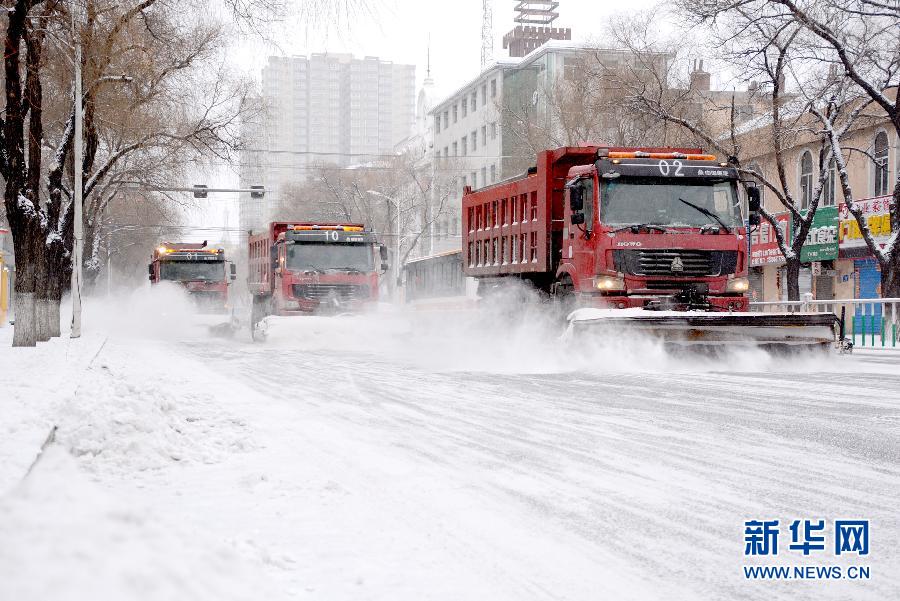 3月4日,在黑龙江省牡丹江市,清雪车正在编组作业。 3月3日至4日,黑龙江省牡丹江市出现降雪降温天气,平均气温下降6摄氏度以上,给当地居民出行带来不便。 新华社发(张春祥 摄)