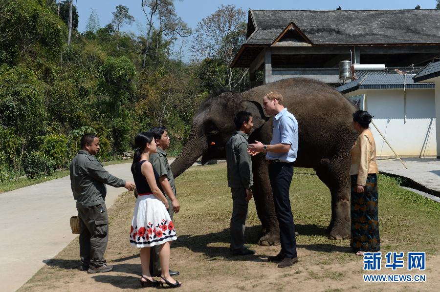 3月4日,英国剑桥公爵威廉王子与亚洲象种源繁育基地的工作人员交流。当日,英国剑桥公爵威廉王子来到云南省西双版纳傣族自治州探访亚洲象种源繁育基地。 新华社记者胡超摄